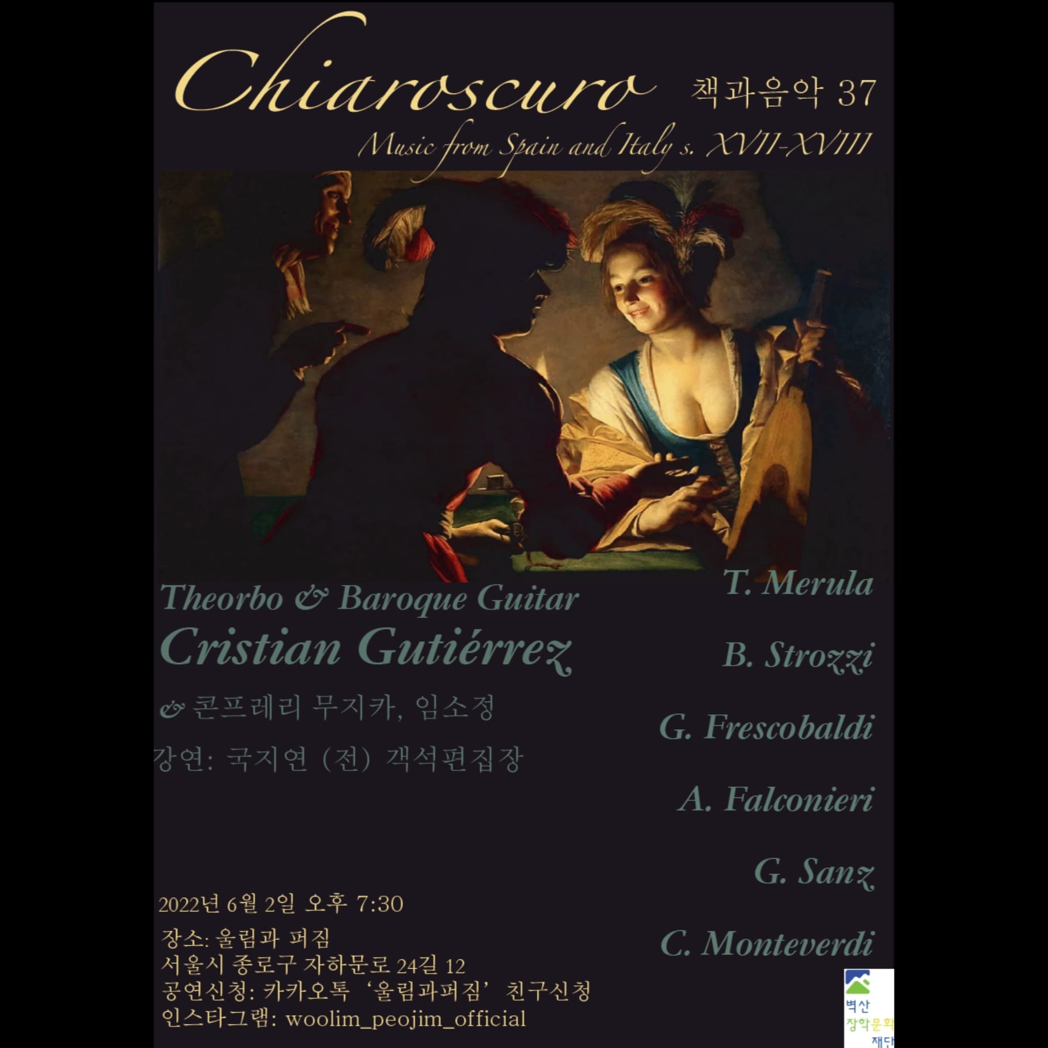 지난 6월 2일은 바로크 기타리스트 크리스티안 구티에레즈의 연주와 콘프레리 무지카, 소프라노 임소정이 함께하는 바로크 음악 그리고 국지연 (전) 객석 편집장이 들려주는 우리나라 전문예술지 '객석'의 이야기가 서촌의 조용한 마을에서 열렸다.